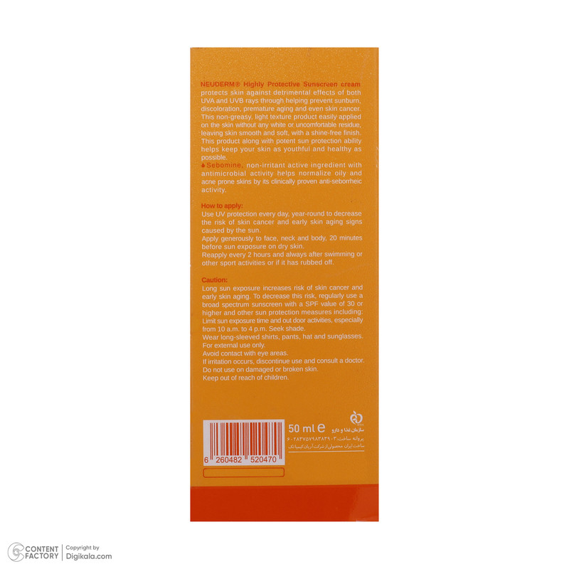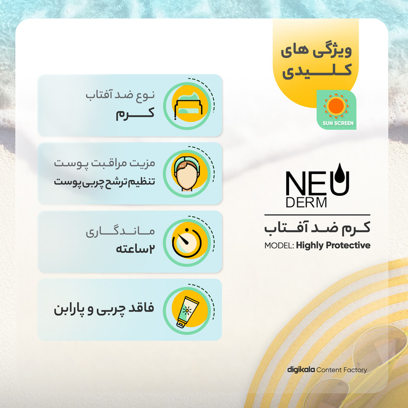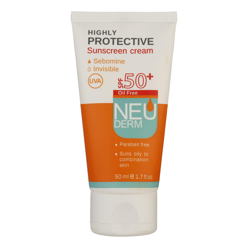 کرم ضدآفتاب بیرنگ نئودرم مدل Highly Protective SPF50، مناسب پوستهای چرب تا مختلط، حجم 50 میلیلیتر