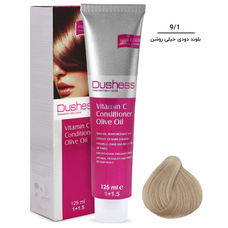 رنگ مو دوشس سری دودی شماره 9.1 حجم 125 میلی لیتر رنگ بلوند دودی خیلی روشن