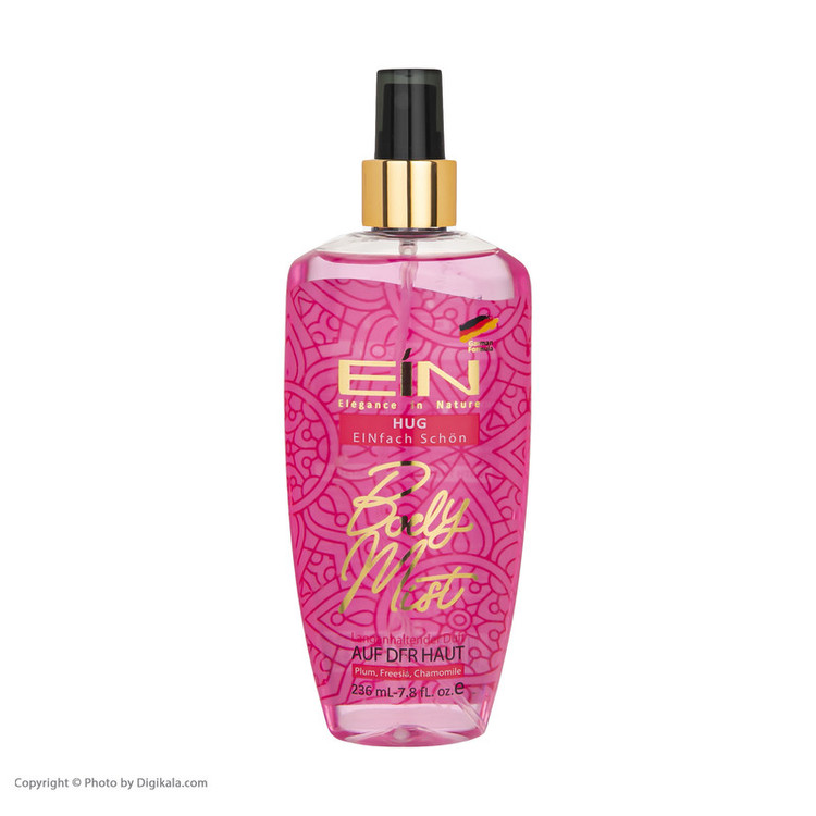 با استفاده از بادی اسپلش EIN رایحه خاص و رمزآلودی را تجربه خواهید کردید این محصول با 6 رایحه منحصر به فرد خود احساسات شما را درگیر می کند و برای همیشه در ذهنتان می ماند. بادی اسپلش نوعی عطر بدن است که با حجم بیشتر و قیمت متناسب می توان برای تمام بدن استفاده کرد. این محصول علاوه بر رایحه مطبوع به منظور آبرسانی و حفظ لطافت و جوانی پوست فرموله شده و برای مصرف روزانه مناسب است.بهترین زمان مصرف، اسپری کردن آن بر روی تمام بدن پس از حمام است.