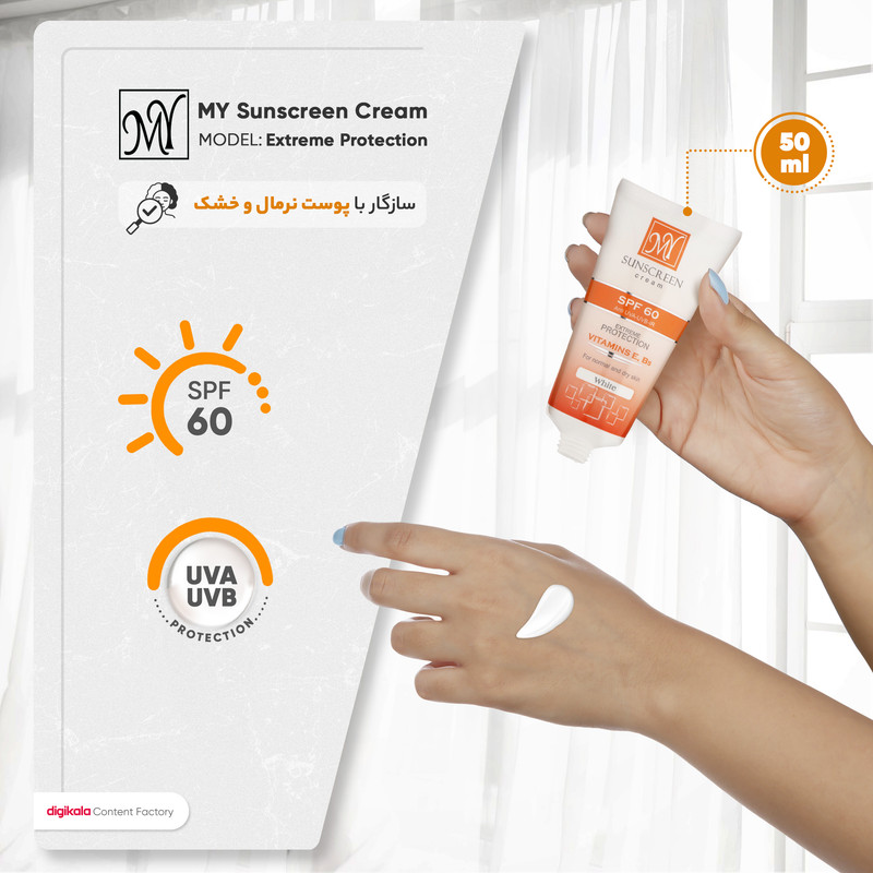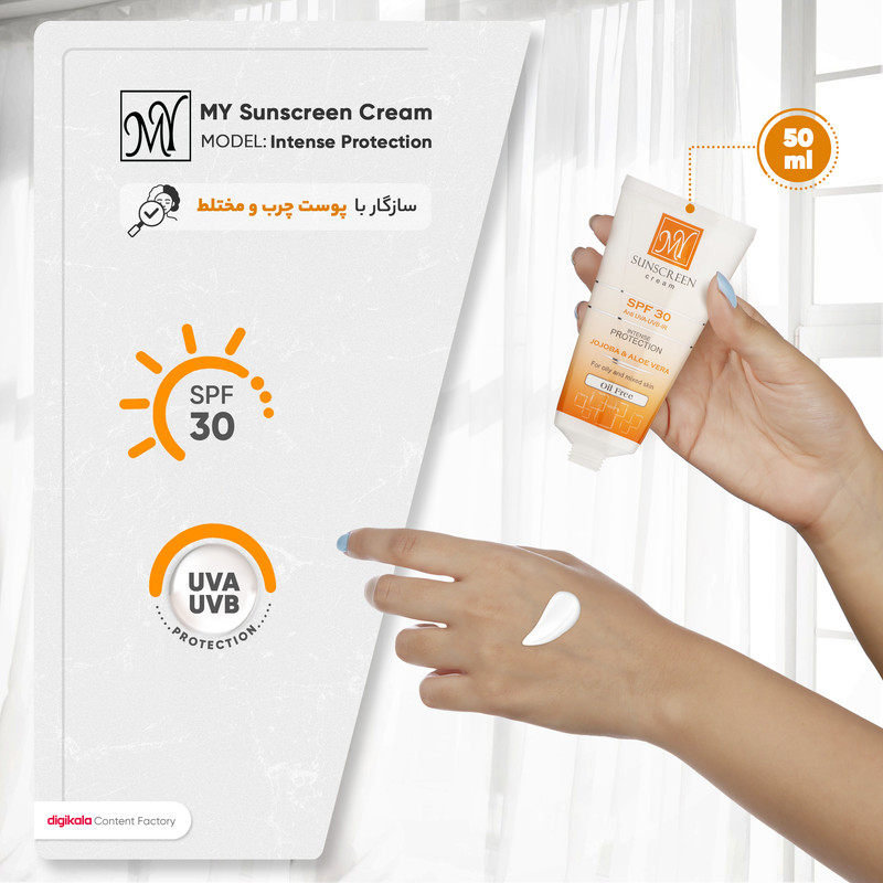 کرم ضدآفتاب بی‌رنگ مای SPF30 مدل Intense Protection، مناسب پوست‌های مختلط و چرب، حجم 50 میلی گرم