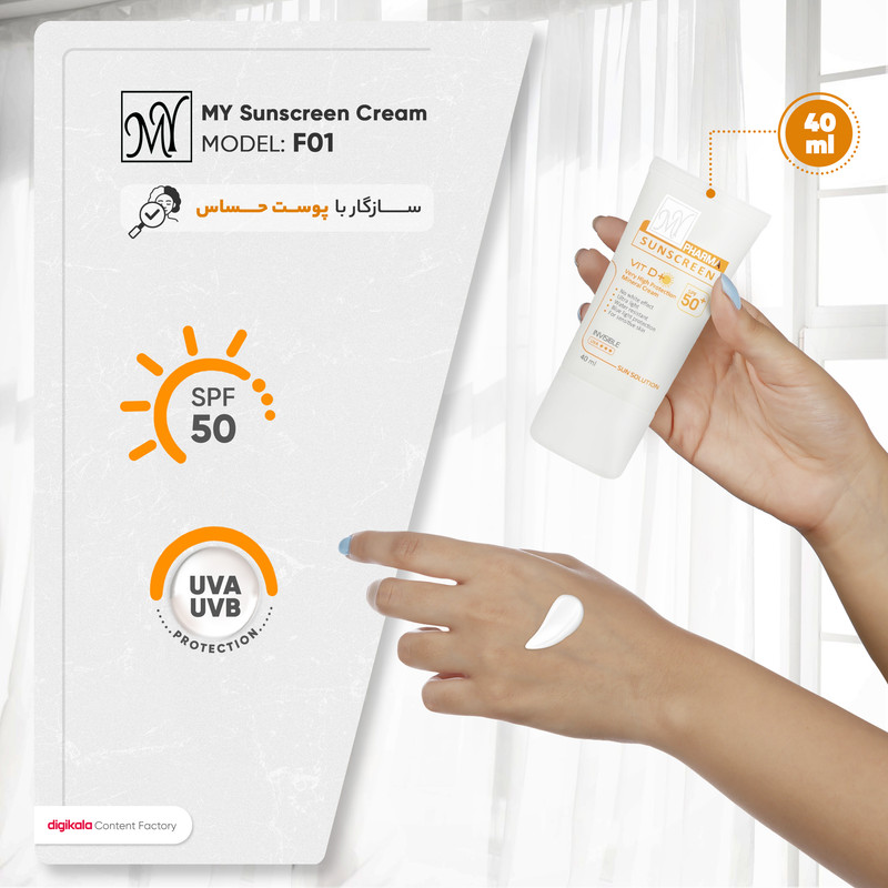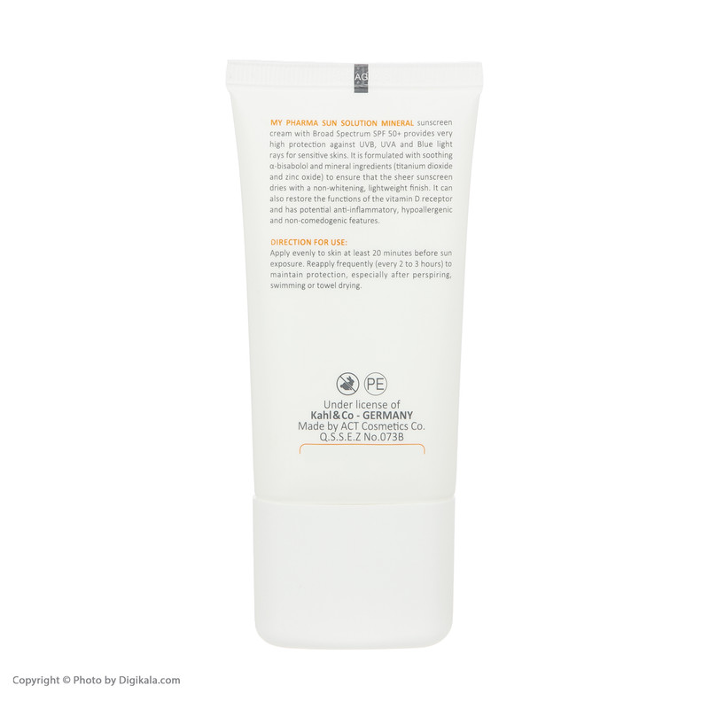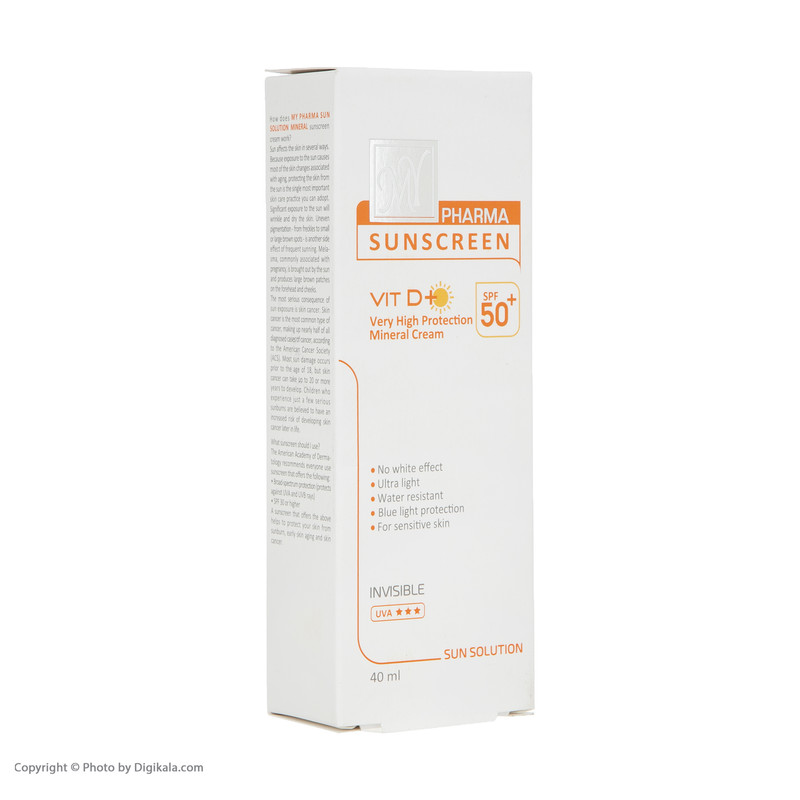 کرم ضد آفتاب SPF50 مای مدل Mineral Sun Solution یک محافظ قوی در برابر اشعه های UVA و UVB است که قابل استفاده در مجاورت تابش شدید آفتاب می باشد. این محصول بدون ایجاد اثر سفیدی روی پوست به خوبی جذب می شود و در برابر آب و رطوبت مقاوم است. این کرم ضد آفتاب برای تمامی پوست ها علی الخصوص پوست حساس مناسب است و وظیفه ی محافظت را به خوبی انجام می دهد. این کرم فاقد رنگ است و در فرمولاسیون خود دارای ویتامین D می باشد. ضد آفتاب از جمله کرم هایی است که باید برای بیرون رفتن و ماندن زیر آفتاب از آن استفاده کرد، زیرا کرم ضد آفتاب باعث می شود پوست شما از اشعه مضر آفتاب دور بماند.