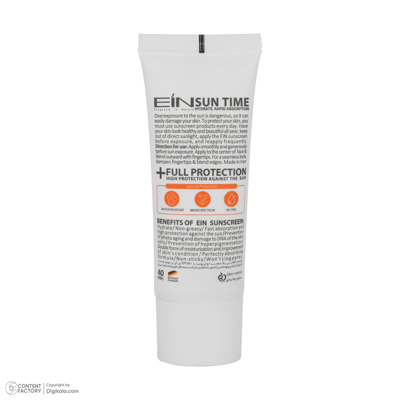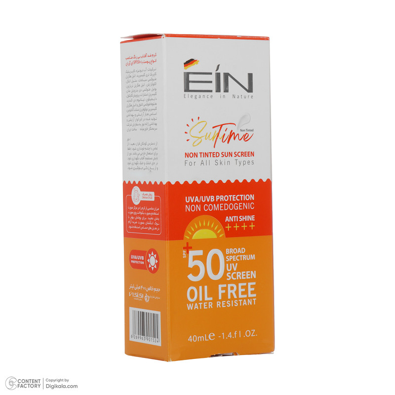کرم ضد آفتاب بی رنگ ای آی ان SPF50 مدل anti shine مناسب انواع پوست‌ حجم 40 میلی‌لیتر